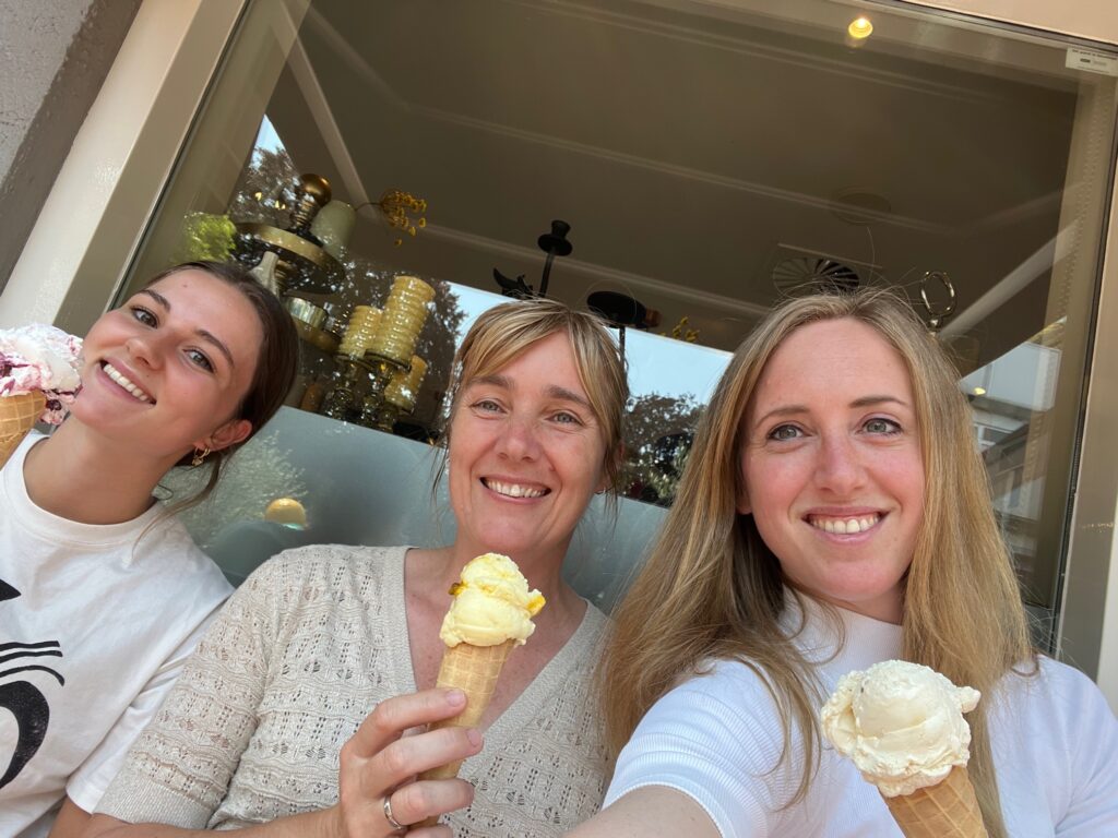 Wat een warme dagen zijn er weer dit jaar! Wij zijn erg gelukkig met de airco op de praktijk zodat zowel wij als de zwangeren geen last hebben van de warmte tijdens de zwangerschapscontroles. Onze verloskundige in opleiding Juul, Nathalie en Jessica besloten even de warmte in te stappen en een ijsje te halen vlak voor de Centering bijeenkomst vandaag. Maar hoe kom je als zwangere deze dagen door? Juist ook als je geen airco thuis hebt? We vertellen je wat tips hieronder!